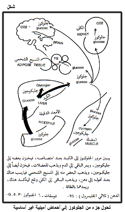 تحول جزء من الجلوكوز إلى أحماض أمينية غير أساسية