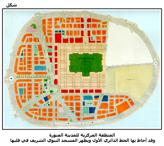 المنطقة المركزية للمدينة المنورة وقد أحاط بها الخط الدائري الأول ويظهر المسجد النبوي الشريف في قلبها