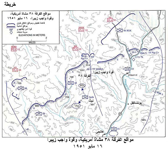 مواقع الفرقة 38 مشاة أمريكية، وقوة واجب زيبرا، 16 مايو 1951