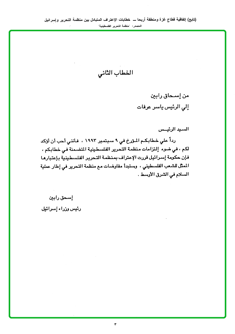 (تابع) خطابات الاعتراف المتبادل بين منظمة التحرير الفلسطينية وإسرائيل