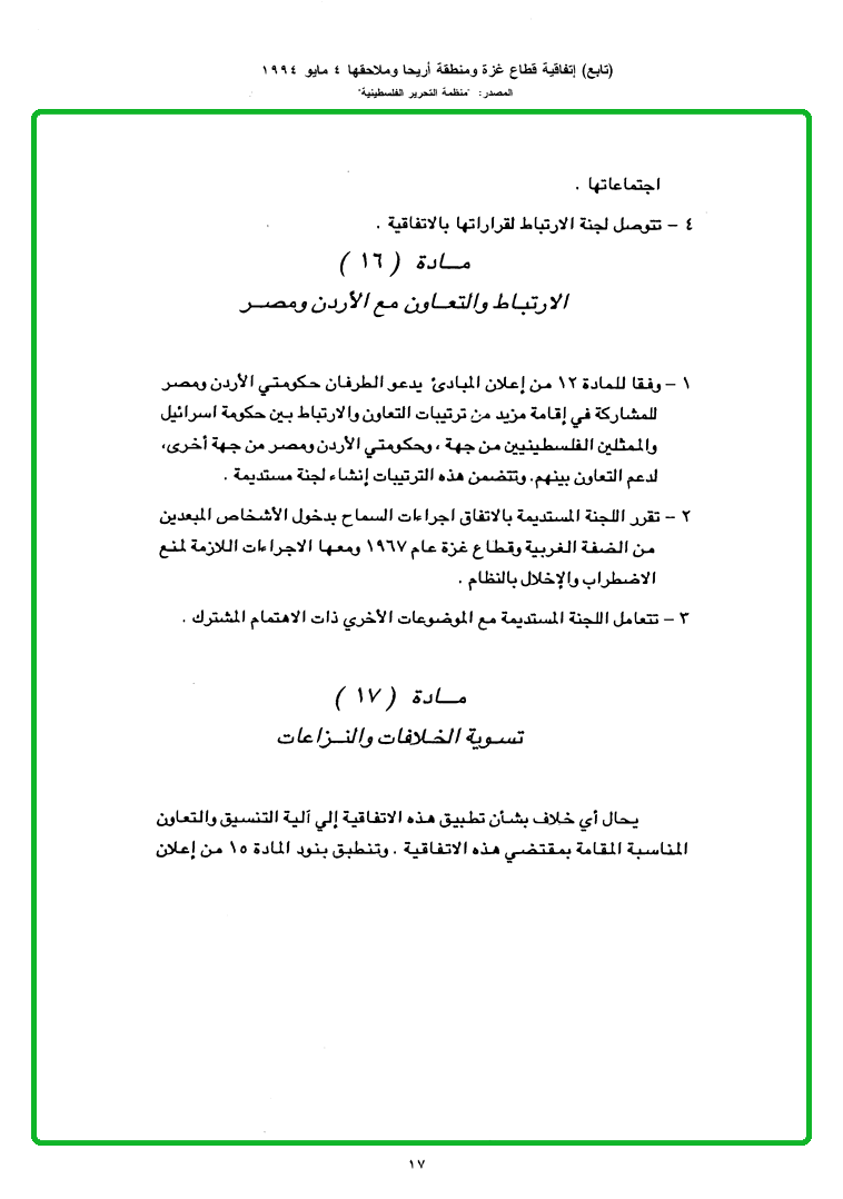 معاهدة السلام: فلسطين/إسرائيل (17)  |