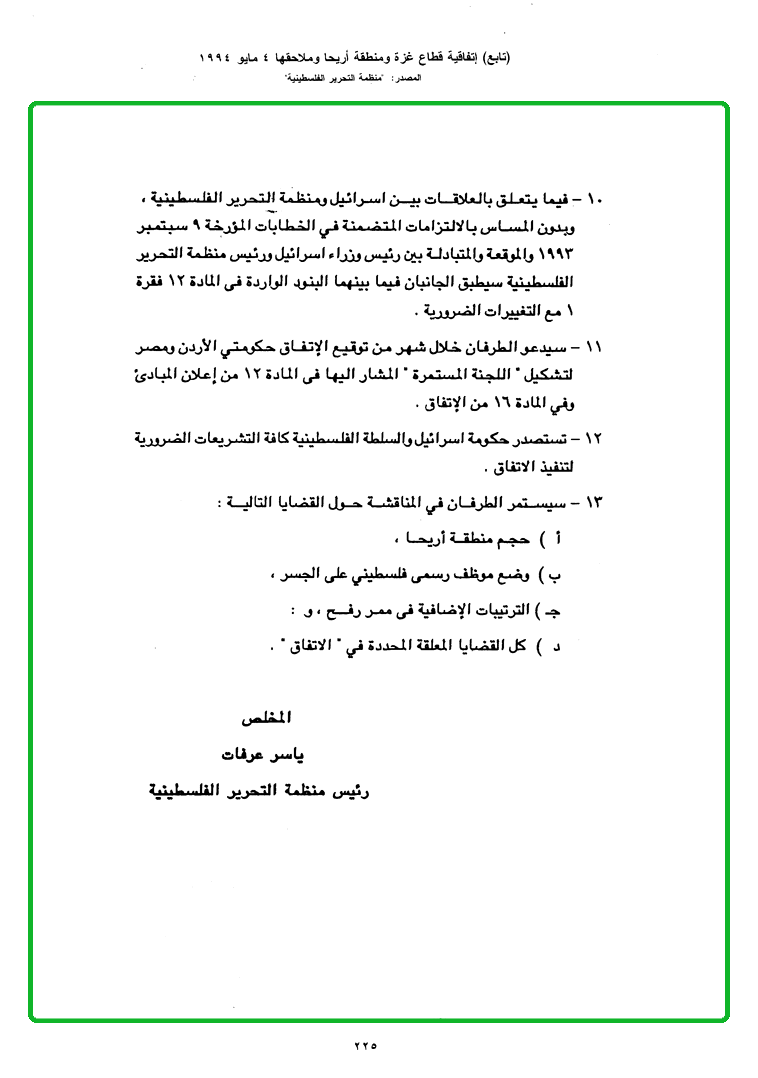 | Home Page / الوثائق / اتفاقيات السلام العربية - الإسرائيلية / فلسطين - إسرائيل / images | |||