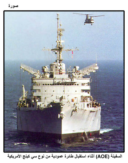 السفينة (AOE) أثناء استقبال طائرة عمودية من نوع سي كينج الأمريكية