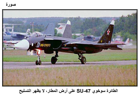 الطائرة سوخوي SU-47، على أرض المطار، لا يظهر التسليح