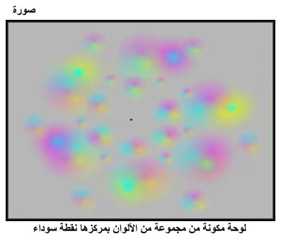 لوحة مكونة من مجموعة من الألوان بمركزها نقطة سوداء بمرك