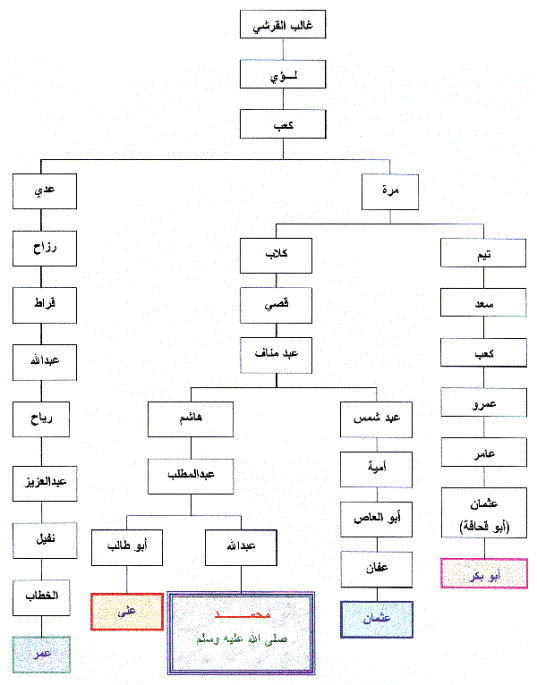 شجرة نسب الرسول الكريم، وخلفائه الراشدين