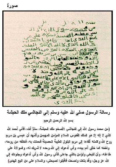 رسالة الرسول - صلى الله عليه وسلم ـ إلى النجاشي ملك الحبشة