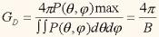 متوسط شدة الإشعاع خلال زاوية فراغية قيمتها "2ط[10]"  بالتقدير الدائري radians ، تساوي الطاقة الكلية المشعة مقسومة على (4ط)، وعلى هذا الأساس يكون معامل الكسب الموجه Gd مكافئاً للتعريف التالي: