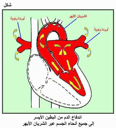 اندفاع الدم من البطين الأيسر إلى جميع أنحاء الجسم عبر الشريان الأبهر