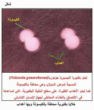 خلايا بكتيرية محاطة بالكبسولة وبها أهداب