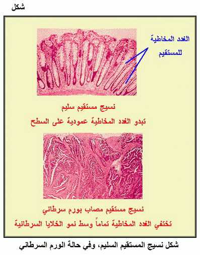 شكل نسيج المستقيم السليم، وفي حالة الورم السرطاني