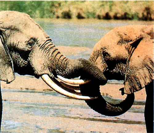 الفيل: من الثدييات آكلة الأعشاب، رتبة الخرطوميات، ذو خمسة أصابع