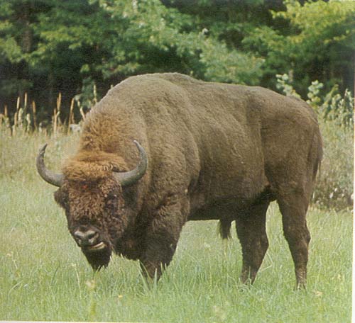 الجاموس (الثور) البسون الأوروبي، يعيش في الغابات. يكاد ينقرض