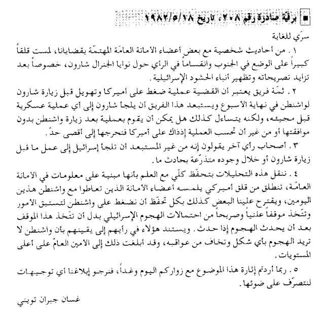 والمرسلة من رئيس البعثة اللبنانية بالأمم المتحدة، إلى وزير الخارجية اللبناني