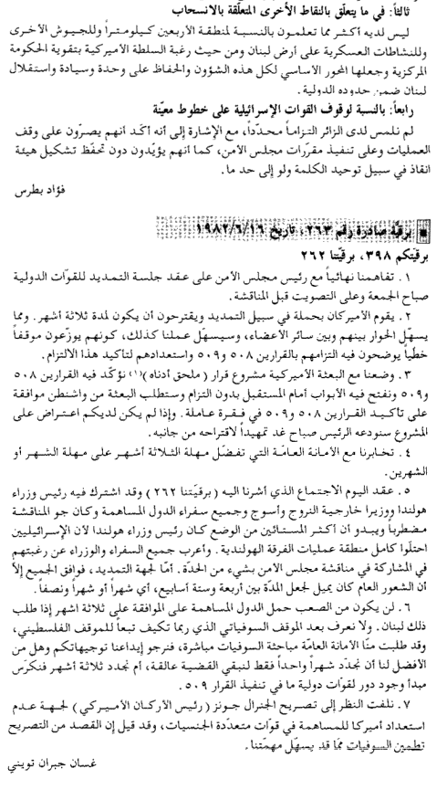 البرقيتان الرقمان 262، في 15 يونيه 1982؛ و263، في 16 يونيه 1982؛
