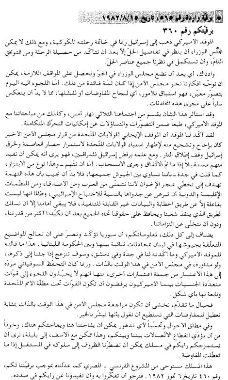 البرقية الرقم 565، في 15 أغسطس 1982،