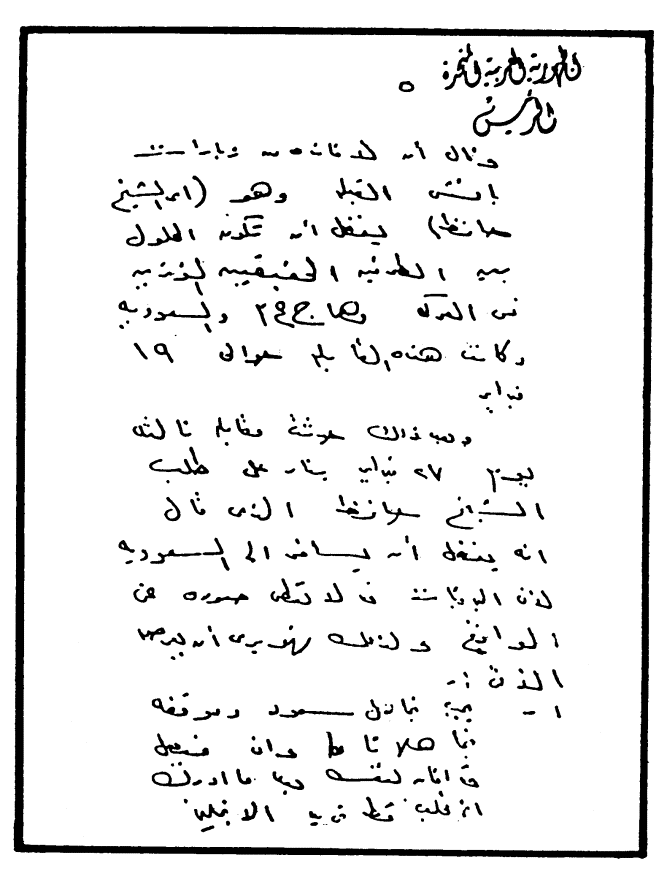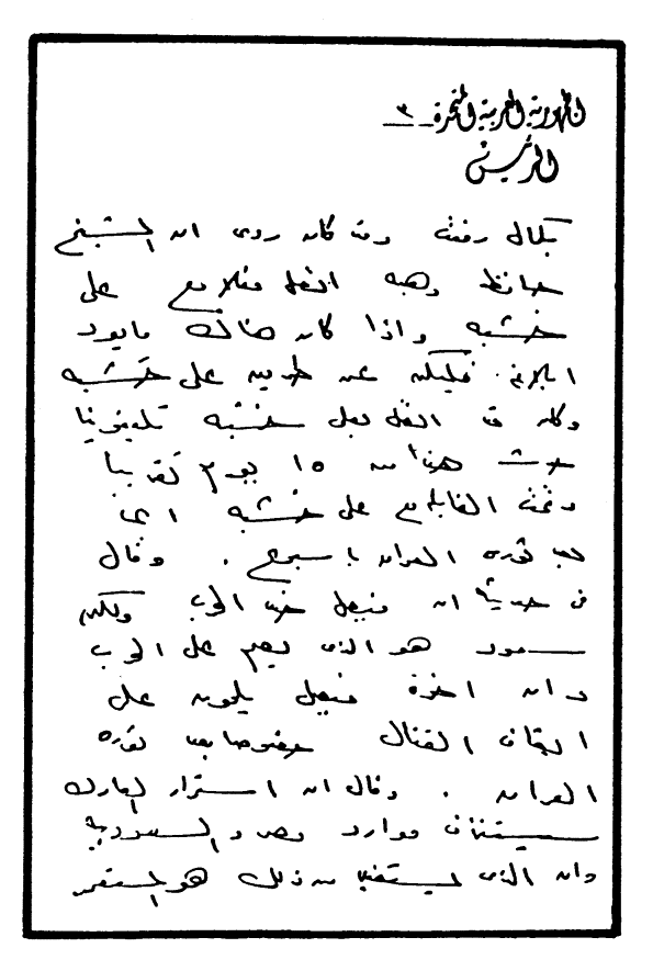 سلامي لك وأشواقي وأرجو أن تكون بخير وصلني جوابك وأرجو الله لك التوفيق في تجميع القوات وسد المسالك.