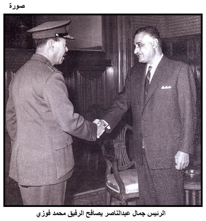 الرئيس جمال عبدالناصر يصافح الرفيق محمد فوزي