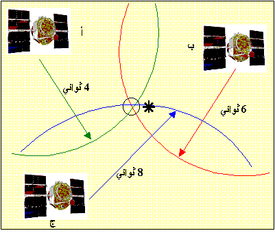 المكان الصحيح للراصد باستخدام ثلاث أقمار صناعية بعد إضافة فرق التوقيت TH8-4