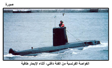 الغواصة الفرنسية من الفئة دافني، أثناء الإبحار طافية