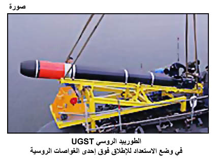 الطوربيد الروسي UGST، في وضع الاستعداد للإطلاق فوق إحدى الغواصات الروسية