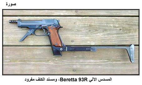 المسدس الآلي Beretta 93 R ، ومسند الكتف مفرود
