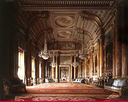 الغرفة الزرقاء في قصر باكنجهام، استخدمت غرفة رقص، عام 1838، تمهيداً لحفلة تتويج الملكة فكتوريا