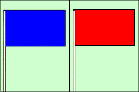 الأحمر يستخدم للإشارة إلى الخطأ الشخصي الثالث أو للإشارة إلى الرمية الركنية والأزرق للإشارة عند عودة اللاعبين المطرودين