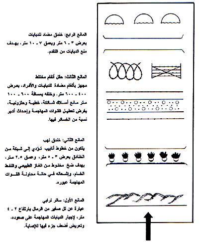 شكل تخطيطي للموانع الهندسية أمام الدفاعات العراقية الرئيسية