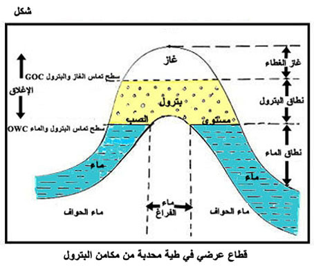 قطاع عرضي في طية محدبة من مكامن البترول