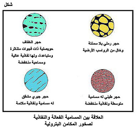 العلاقة بين المسامية الفعالة والنفاذية لصخور المكامن البترولية