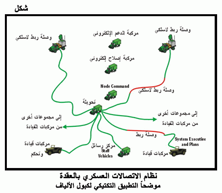 نظام الاتصالات العسكري بالعقدة، موضحاً التطبيق التكتيكي لكبول الألياف
