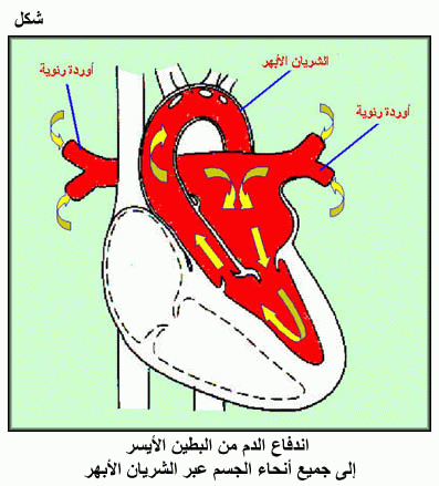اندفاع الدم من البطين الأيسر إلى جميع أنحاء الجسم عبر الشريان الأبهر