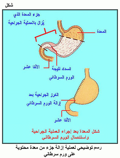 رسم توضيحي لعملية إزالة جزء من معدة محتوية على ورم سرطاني