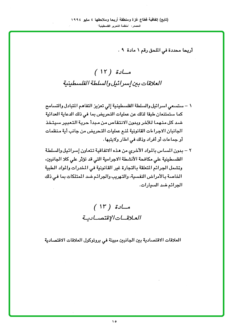 Home Page / الوثائق / اتفاقيات السلام العربية - الإسرائيلية / فلسطين - إسرائيل / images