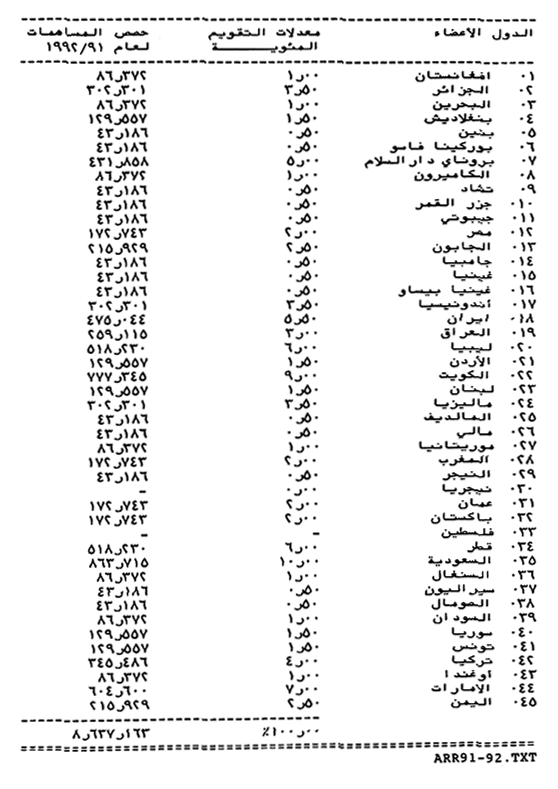 لمنظمة المؤتمر الاسلامي للسنة المالية 91/1992 محسوبة