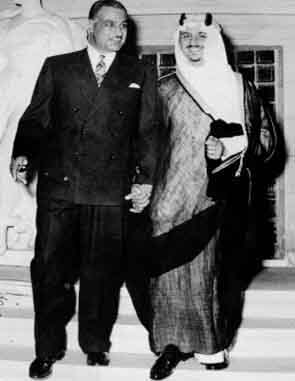 والدي سمو الأمير سلطان والزعيم المصري جمال عبد الناصر متشابكَيْ الأيدي في جو من الود والوئام. بيد أن صداقتهما انقطعت إبَّان الحرب الأهلية في اليمن في الستينات، إذ أدت تلك الحرب إلى مواجهة بينهما.