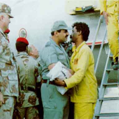 الترحيب بأسرى الحرب من قوات التحالف بعد ما أطلقهم العراقيون.