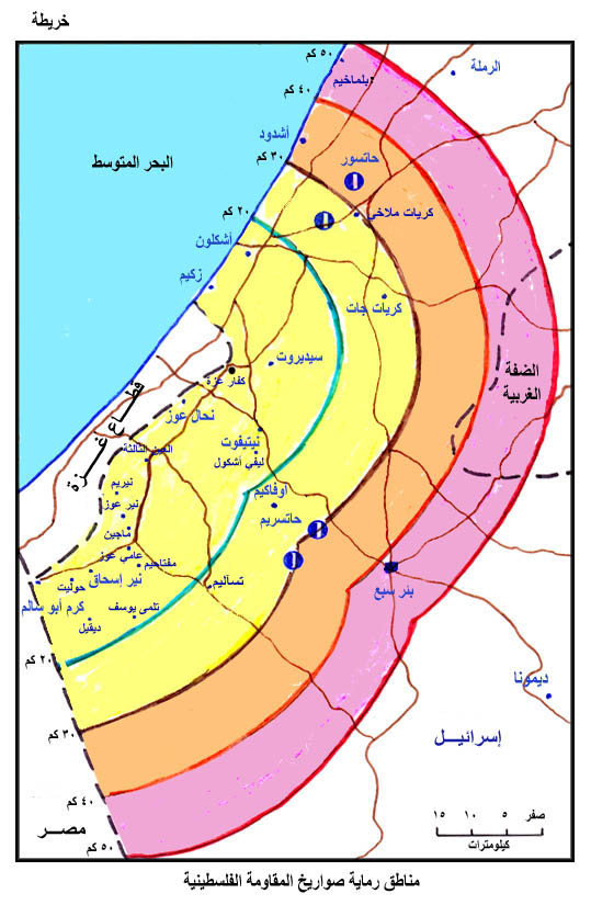 مناطق رماية صواريخ المقاومة الفلسطينية