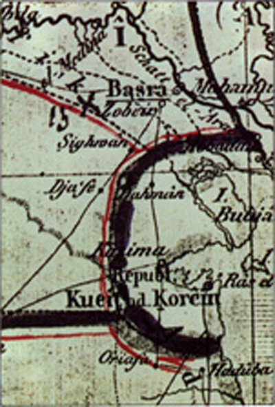 خريطة للعالم الألماني كارل ريتر تظهر الكويت تحت اسم الكويت والقرين نشرت باللغة الألمانية عام 1818