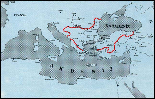 الحدود العثمانية بعد وفاة السلطان مراد الأول (791هـ/1389م)